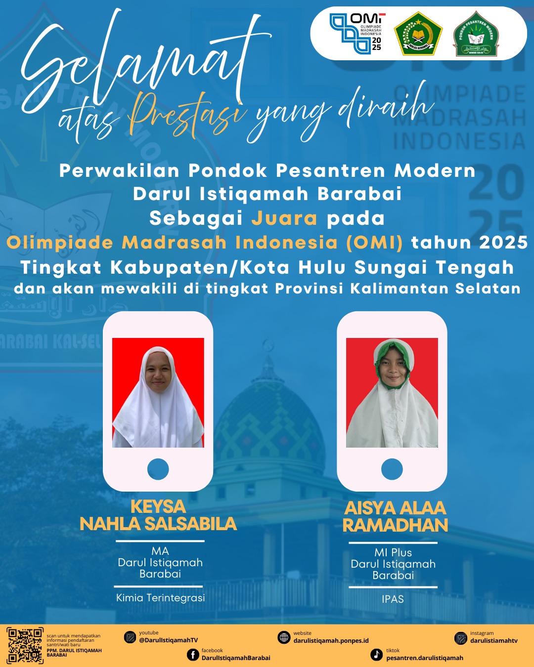Bangga! Dua Santriwati PPM Darul Istiqamah Raih Juara Tiga OMI Sains Tingkat Kabupaten Hulu Sungai Tengah