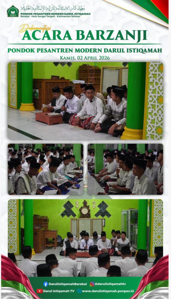 Barabai (PPM Darul Istiqamah) – Kegiatan pembacaan Maulid Al-Habsy dan Maulid Barzanji pada malam Jum’at di Pondok Pesantren Modern (PPM) Darul Istiqamah Putra menjadi agenda rutin mingguan yang sarat nilai spiritual dan pembinaan karakter santri. Kegiatan tersebut dilaksanakan di masjid pondok pada Kamis malam (9/4/2026).