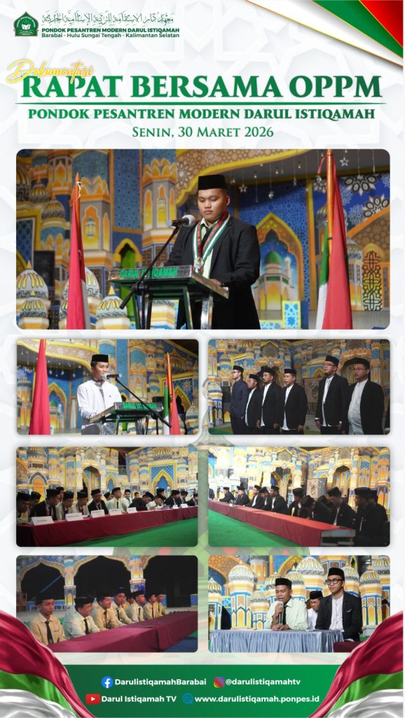 Barabai (PPM Darul Istiqamah) – Pondok Pesantren Modern (PPM) Darul Istiqamah menggelar rapat kerja pengurus Organisasi Pelajar Pondok Modern (OPPM) putra periode 2025/2026 bersama dewan asatidz. Kegiatan tersebut dilaksanakan di aula pondok putra pada Senin malam (30/3/2026).