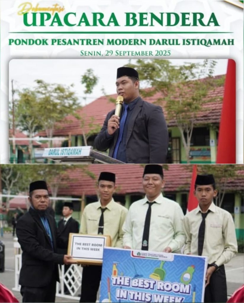 Selain amanat kepemimpinan, pada upacara pagi tersebut juga diumumkan sekaligus dibagikan penghargaan The Best Room in This Week atau asrama terbaik mingguan bagi para santri putra. Penghargaan diserahkan langsung oleh Kepala Madrasah Aliyah (MA) Darul Istiqamah, Ustaz Muhammad Ruliyadi, S.Pd.I, yang turut hadir dalam pelaksanaan upacara.